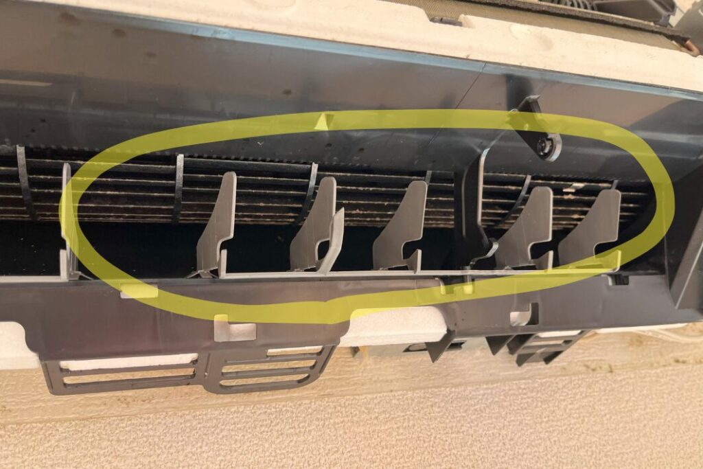 ↑下から見てここにこれだけカビホコリが付いていたらエアコンクリーニング依頼するのがいいと思います。