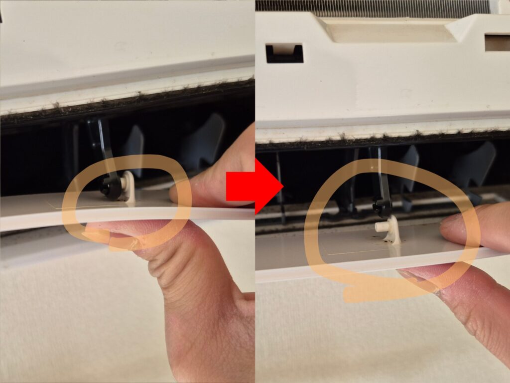 このルーバーはめちゃくちゃ折れやすいので、古かったり、不安だなと思ったら外さないでもいいですが、出来れば外しましょう。